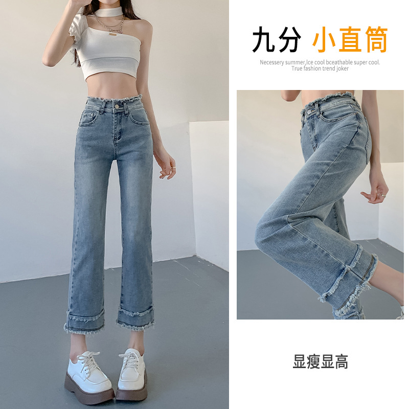 Celana Jeans Gaya Amerika Gaujie Celana Lebar Kaki Mudah Dipadu Padan Kasual Terlihat Langsing Lurus Longgar Gadis Pedas Celana 7/8 Model Baru