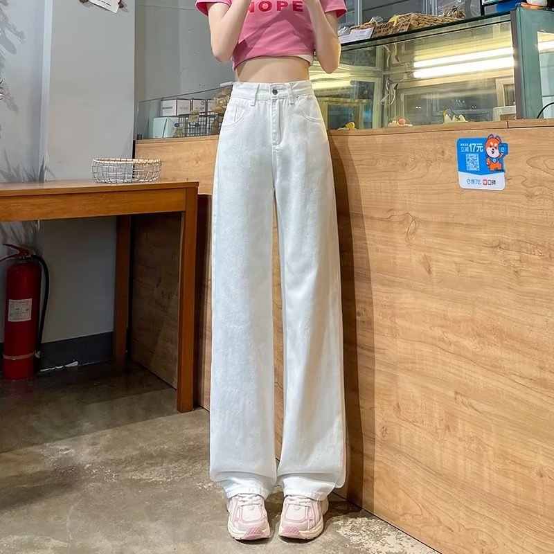 Celana Jeans Warna Muda Terlihat Langsing Pinggang Tinggi Tahun 2025 Celana Lurus Wanita Celana Kaki Lebar Versi Sempit Longgar Gadis Gemuk