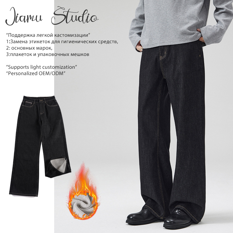 Celana Jeans Warna Abu-abu Karbon Retro Gaya Amerika 11KN Celana Panjang Kasual Katun Murni Trendi Longgar Terlihat Langsing