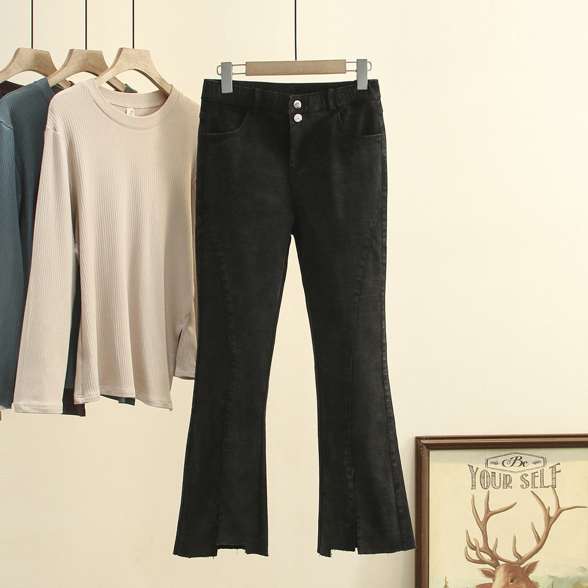 Celana ketat wanita, jeans ukuran besar wanita gemuk MM200 kg pelangsing pinggang tinggi melar kaki lebar tebal kasual ramping