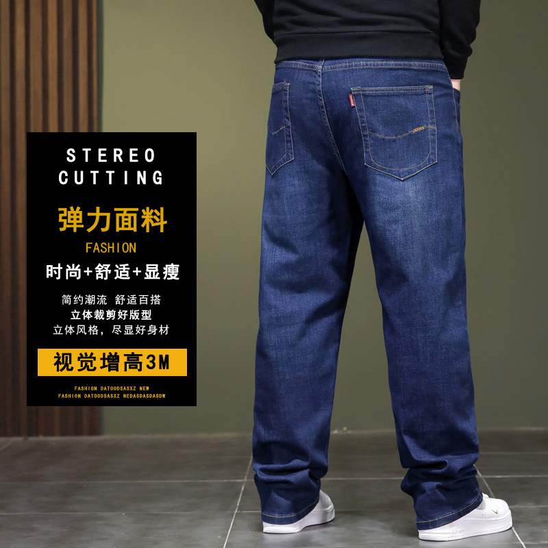 Celana jins lurus bisnis pria, celana jins ukuran besar regang longgar Semua cocok modis 009 pengiriman satu potong