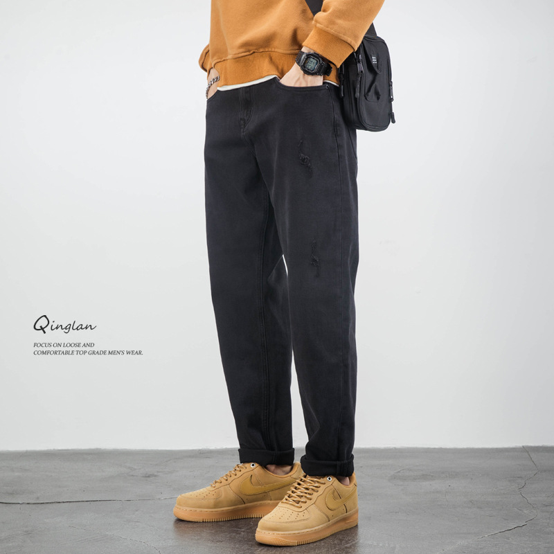 Celana panjang lurus pria, Jeans ukuran plus mode musim semi musim gugur celana panjang kasual Semua cocok