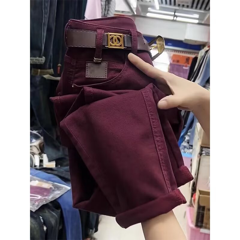 Celana jins elastis untuk wanita, celana jins elastis kasual, celana pinggang tinggi, celana pelangsing ukuran plus, celana gaya Korea serbaguna, modis, musim semi dan musim gugur