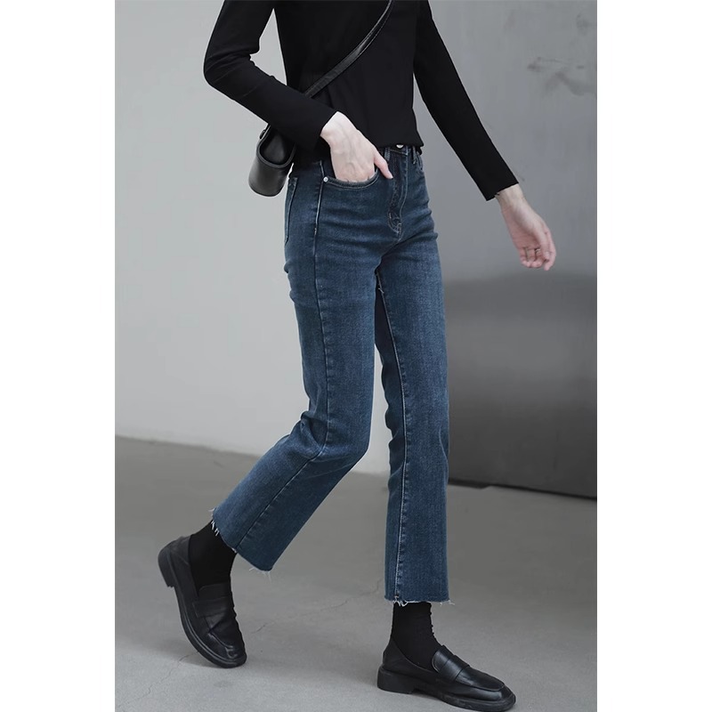 Celana jins wanita Korea, celana jins ketat anak perempuan, celana jins robek, celana crop ukuran besar, pakaian wanita 3704, baru, gaya Korea, musim gugur