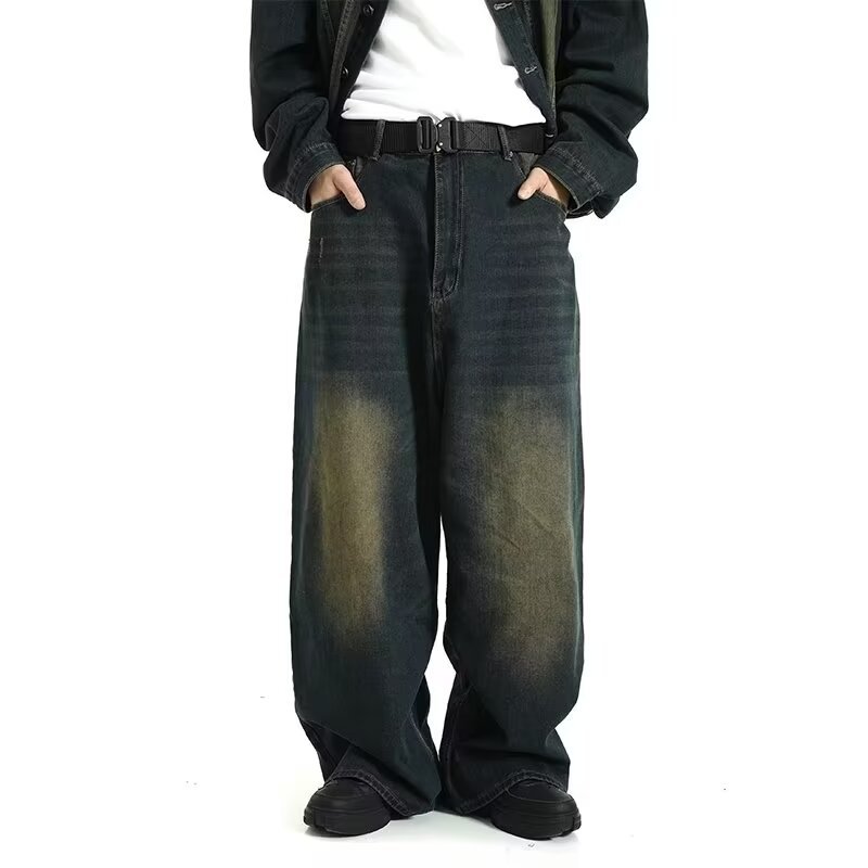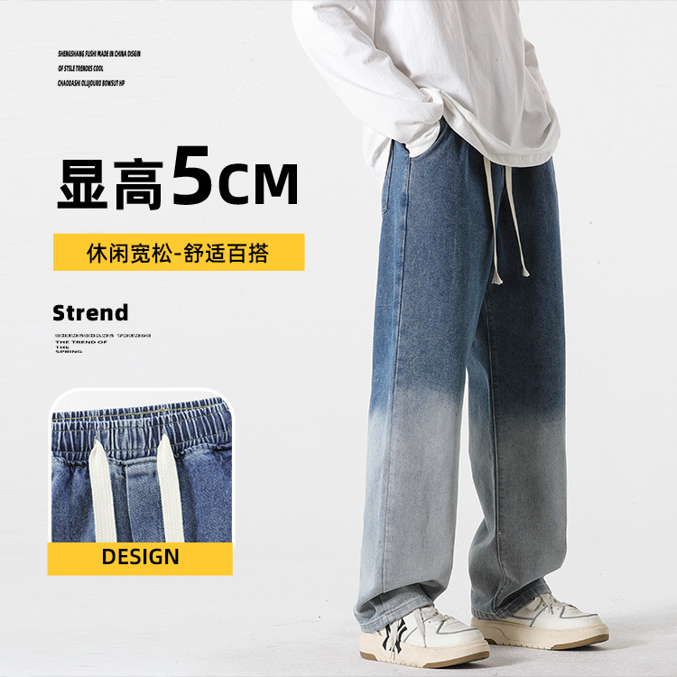 Celana jins pria kaki lebar, celana kasual hip hop longgar pria, celana kaki lebar tren gradien baru musim gugur dan musim dingin, jeans gaya Eropa dan Amerika