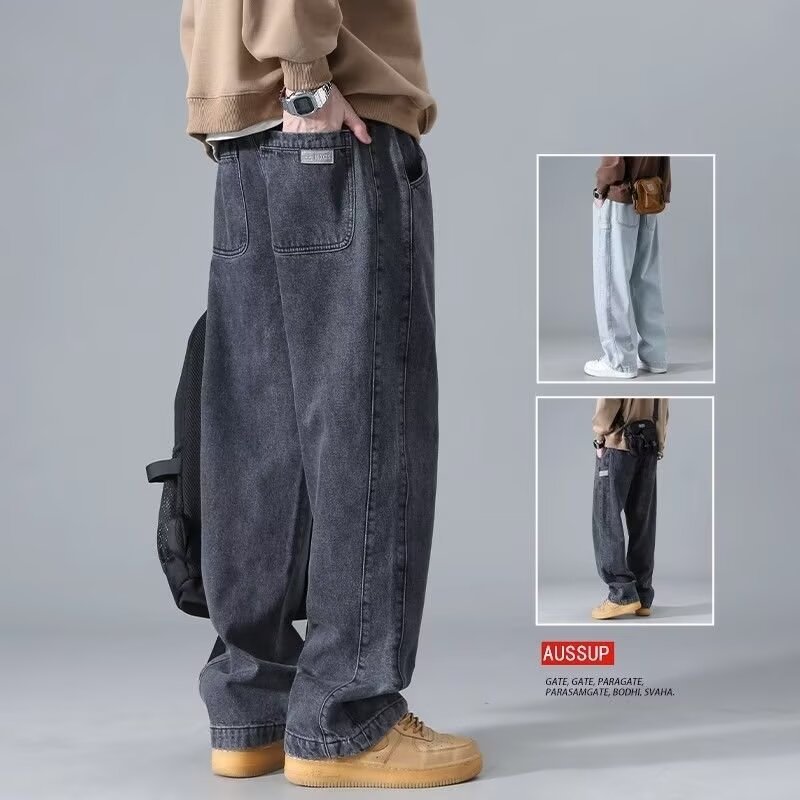 Celana Panjang Denim Longgar Jalan Tinggi Gaya Amerika vibe Pakaian Kerja Celana Lebar Kaki Pakaian Pria Merek Trendi