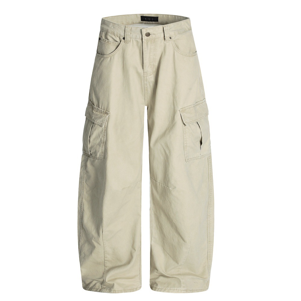 Celana Jeans Pakaian Kerja Banyak Saku Lama Dicuci Retro Gaya Amerika Celana Panjang Kaki Lebar Longgar Gaya Desain Niche Trendi