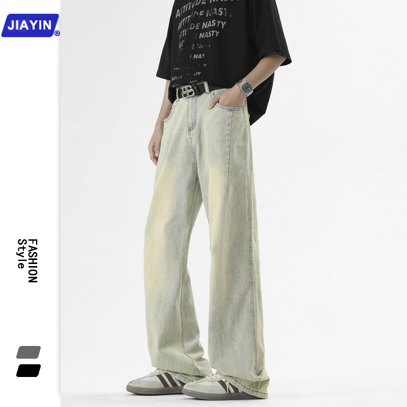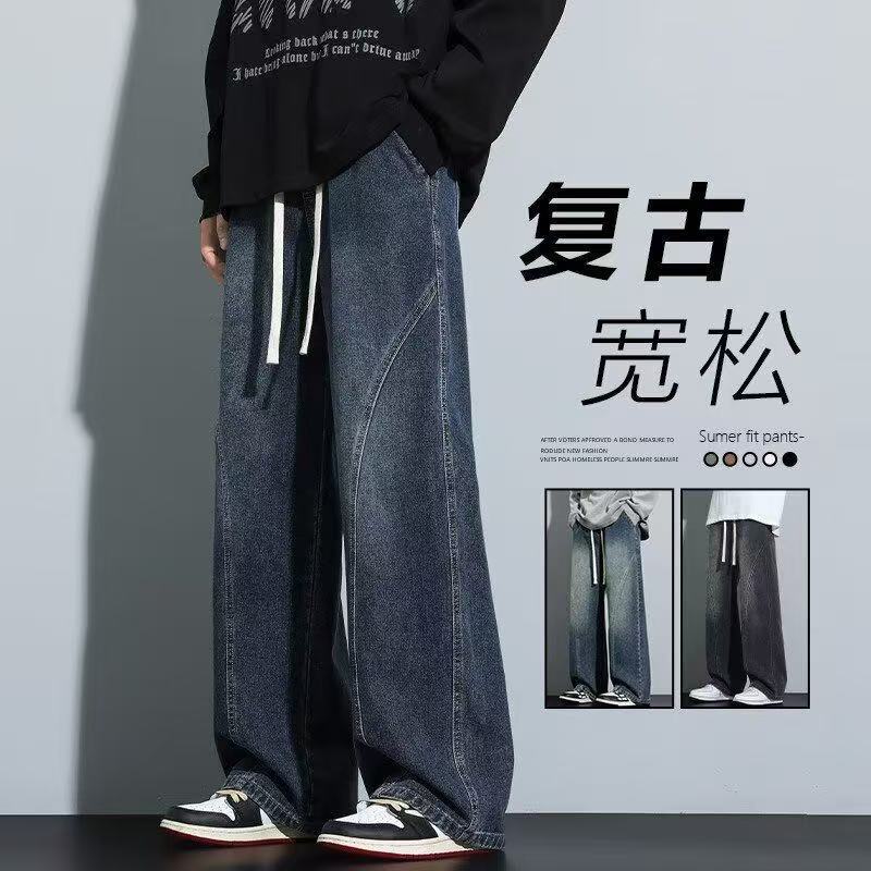 Celana Jeans Retro Gaya Amerika Celana Panjang Kasual Kaki Lebar Longgar Lurus Pria Model Baru Musim Semi Musim Gugur Merek Trendi Pria Pakaian Musim Panas