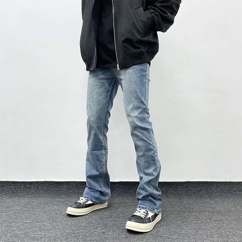Celana Jeans Mikro-Terompet Slim-fit Micro-elastis Pria Warna Biru Muda Mudah Dipadu Padan Celana Kasual Trendi