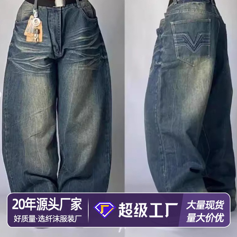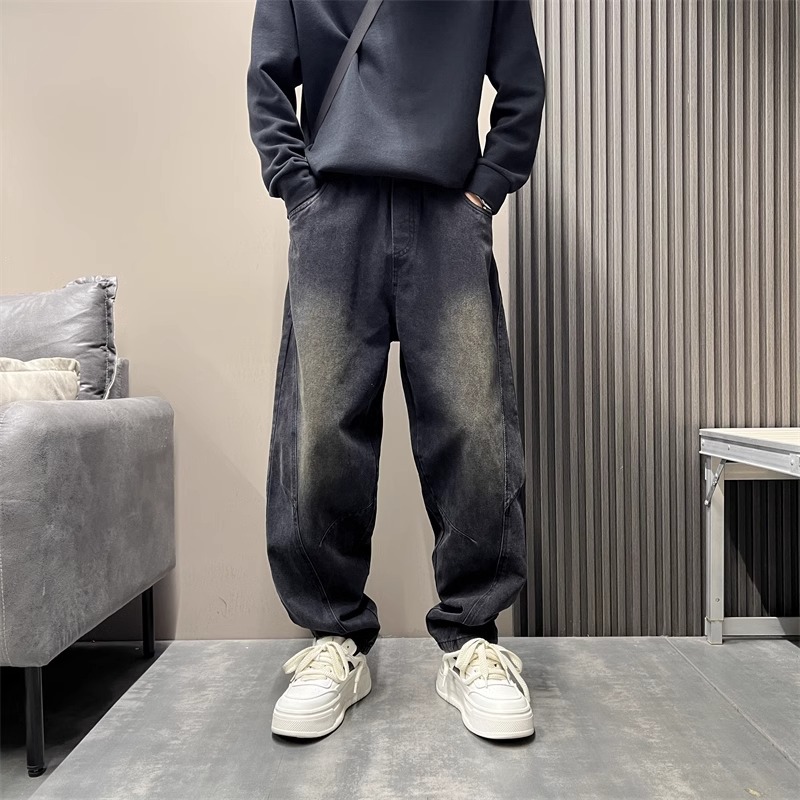 Celana jeans lurus vintage untuk pria, celana ukuran besar merek trendi longgar musim gugur, celana lebar serbaguna untuk musim semi dan musim gugur, kasual dan serbaguna.