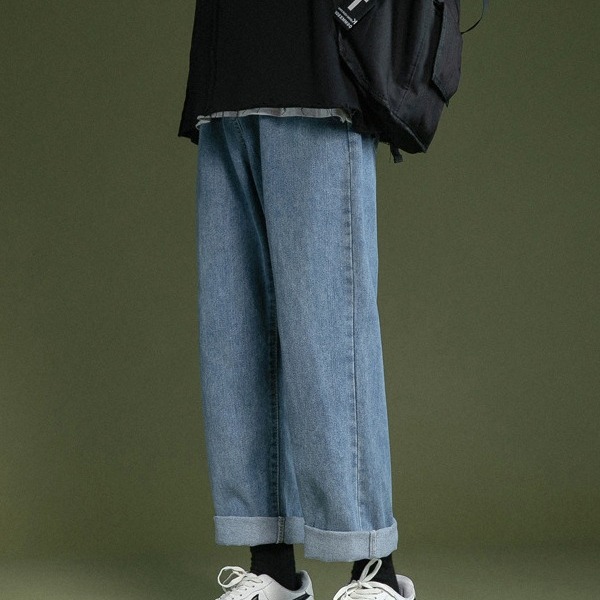 Celana jins longgar ukuran besar, celana jins pria musim gugur, celana panjang kaki lebar kasual trendi, celana pemuda, celana lurus longgar, ukuran plus, baru
