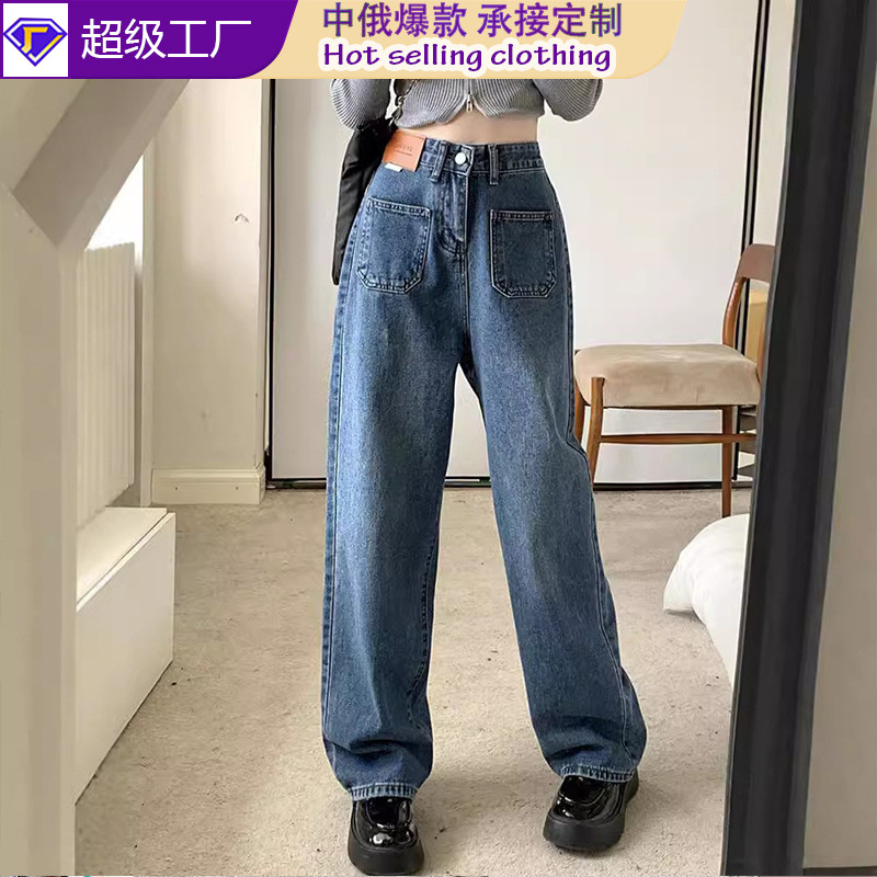 Jiajun celana jeans lurus berpinggang tinggi ukuran besar terbaru untuk musim semi dan musim panas, cocok untuk gadis berisi, celana longgar berpotongan lebar.