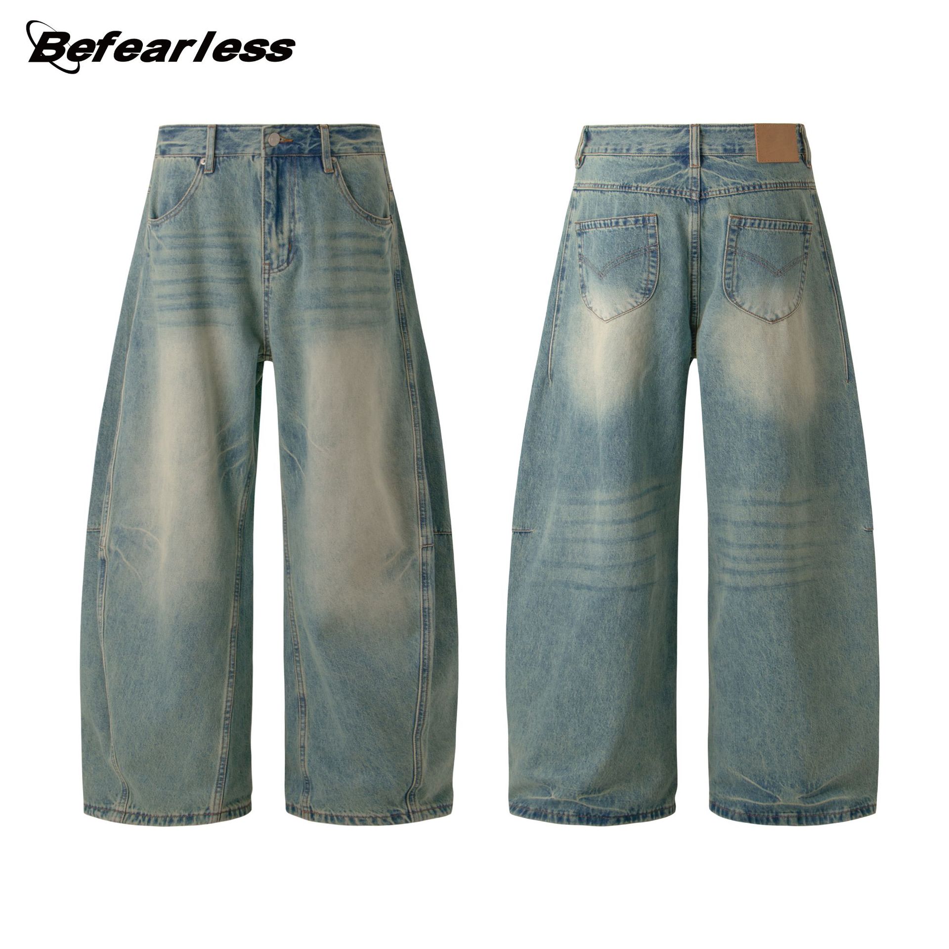 Befearless Celana Jeans Pisau Golok Dicuci Retro Gaya Amerika Celana Panjang Kasual Pisang Kaki Lebar Longgar Merek Trendi Pria Wanita