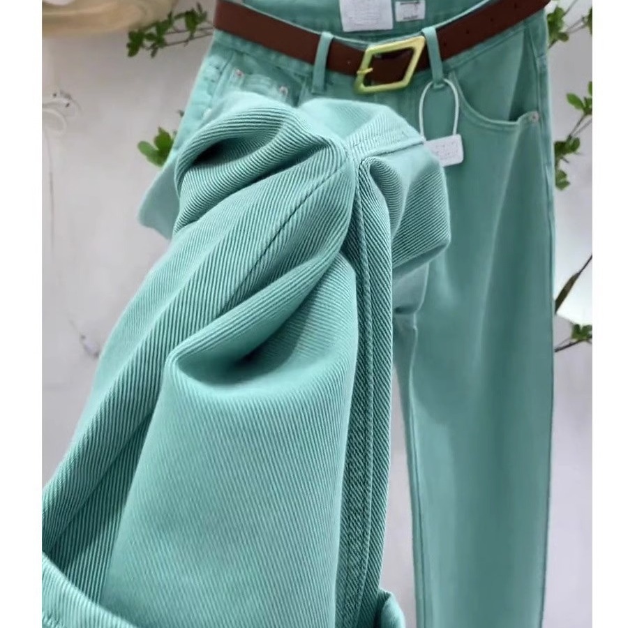 Celana jins lurus longgar wanita, celana jins lurus pinggang tinggi pelangsing ukuran plus musim gugur 006