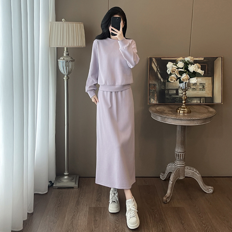 欧洲站女秋季新款时尚洋气套装圆领上衣中长款半身裙两件套休闲潮