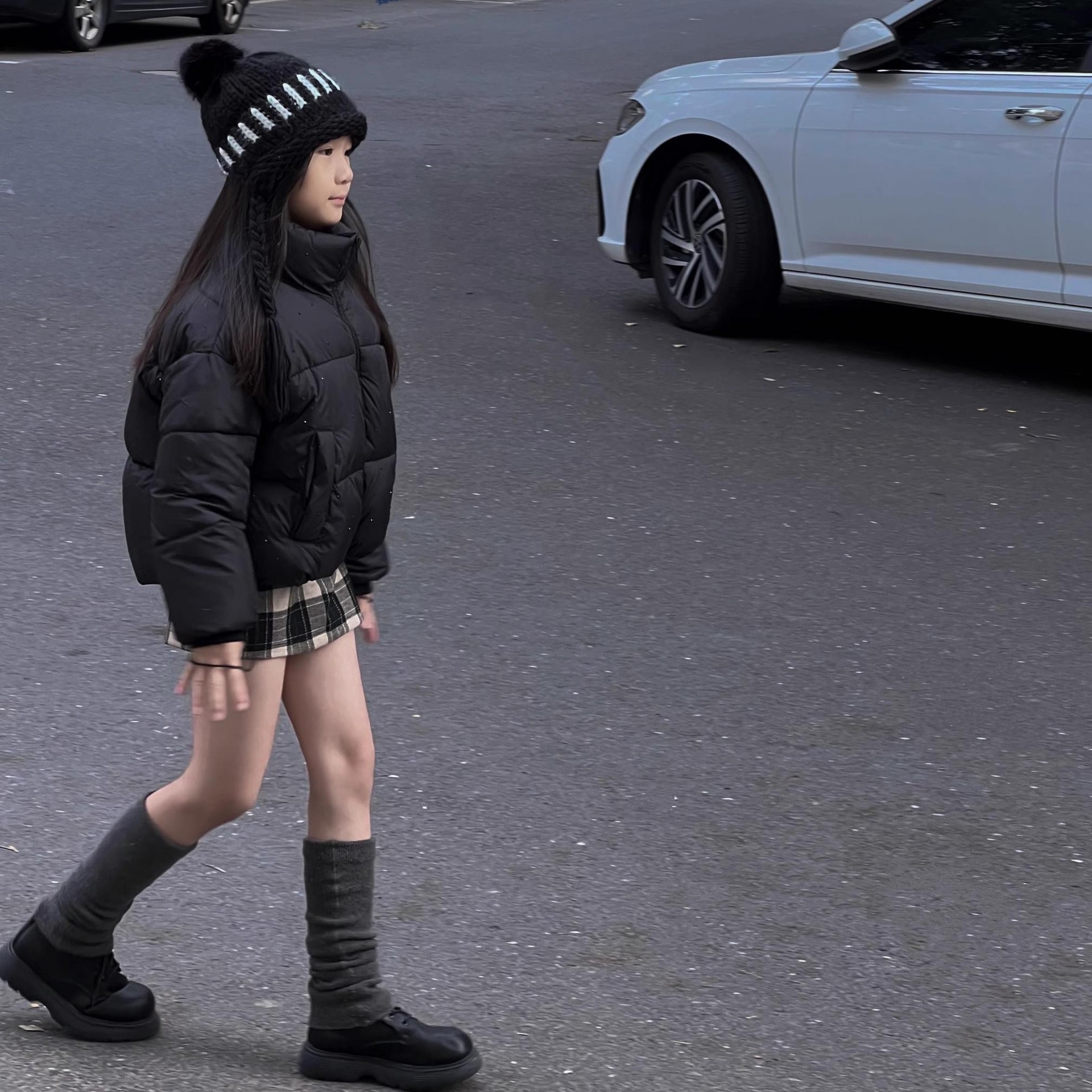女童裙毛呢黑白格子半身裙秋冬复古风直筒韩版A字裙百搭短裙裤