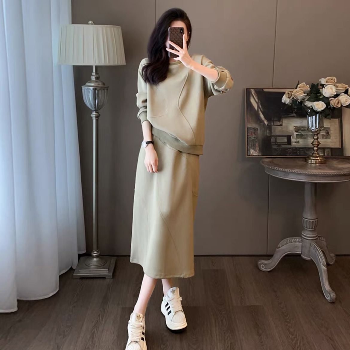 洋气高端休闲时尚套装女2024年秋季新款遮肚减龄卫衣半身裙两件套
