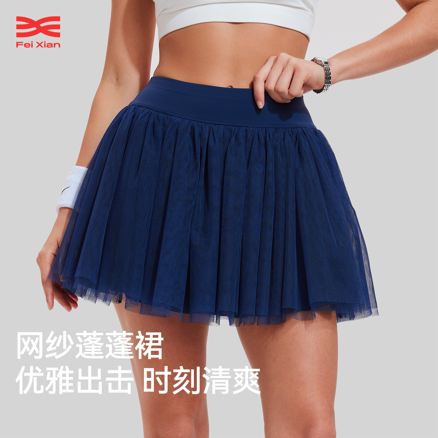 现货跨境新款网球裙女夏白色网纱蓬蓬裙健身运动羽毛球公主裙半身