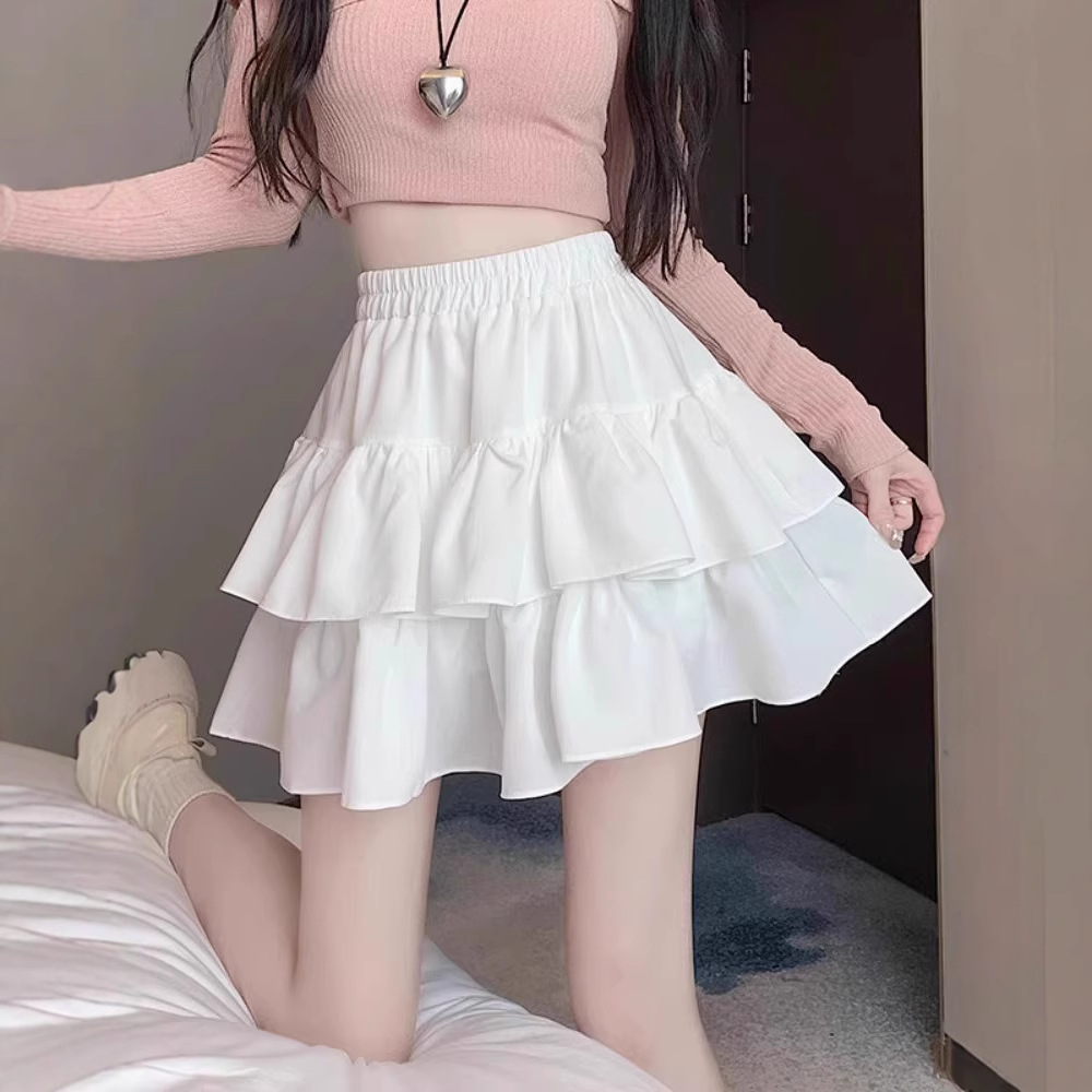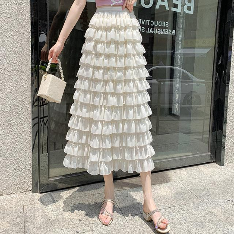 Rok Kue Warna Putih Rok Setengah Badan Mudah Dipadu Padan Terlihat Langsing Pinggang Tinggi Gaya Korea