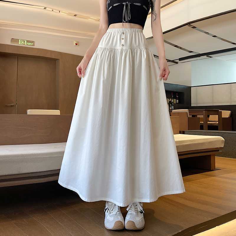 Rok Kue Rok Setengah Badan Wanita Model Baru 2025 Elegan Musim Panas Pinggang Tinggi Terlihat Langsing Bentuk Buah Pir Rok Panjang Warna Putih Besar Huruf A