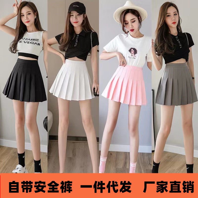 Rok Lipit Wanita Rok Huruf A Warna Putih JK Musim Semi Musim Panas Rok Pendek Pinggang Tinggi Gaya Korea Model Baru Rok Setengah Badan Kotak-Kotak Ukuran Besar Mudah Dipadu Padan