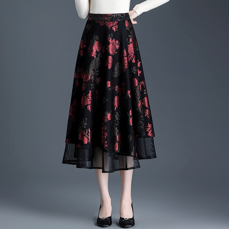 碎花中长款半身裙秋冬新款女装印花大摆一片式裙子两面穿A字裙潮