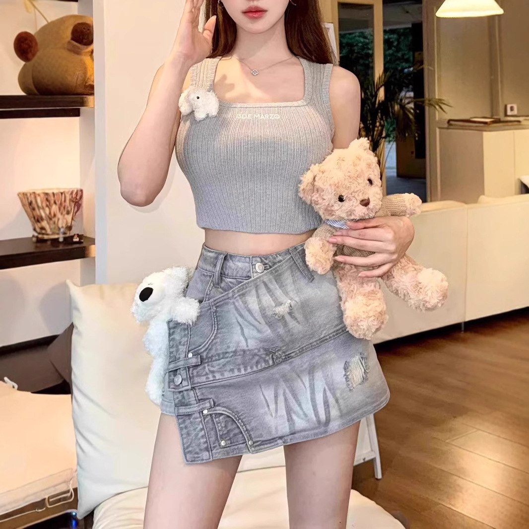 欧美小众仿裤装设计感牛仔裙女辣妹性感磨破百搭不规则半身裙子潮