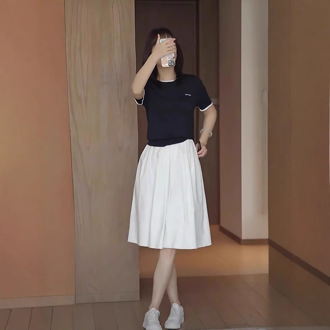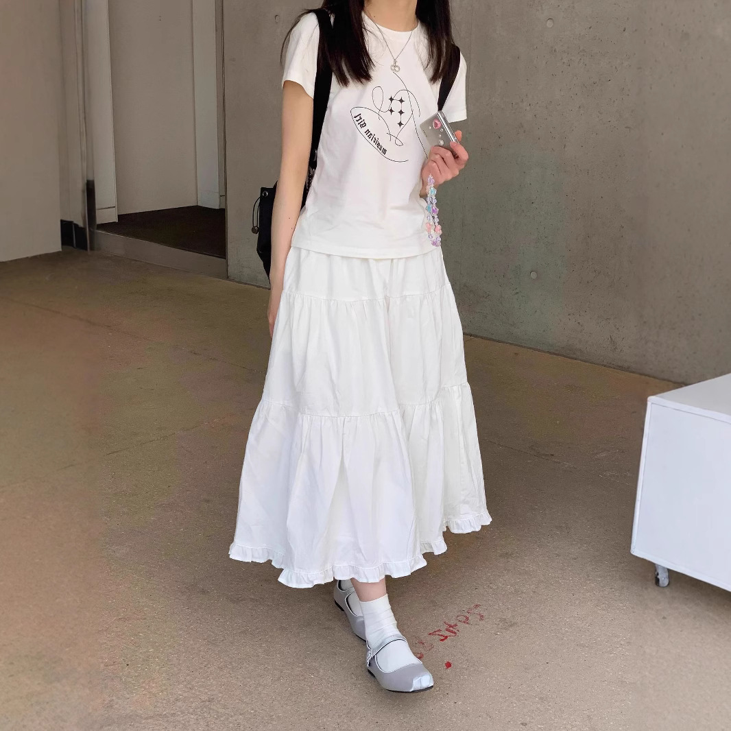 Rok Panjang Besar Terlihat Langsing Longgar Gadis Pedas Temperamen Kelas Atas Rok Setengah Badan Warna Putih Mudah Dipadu Padan Gaya Korea Model Baru Musim Panas Wanita