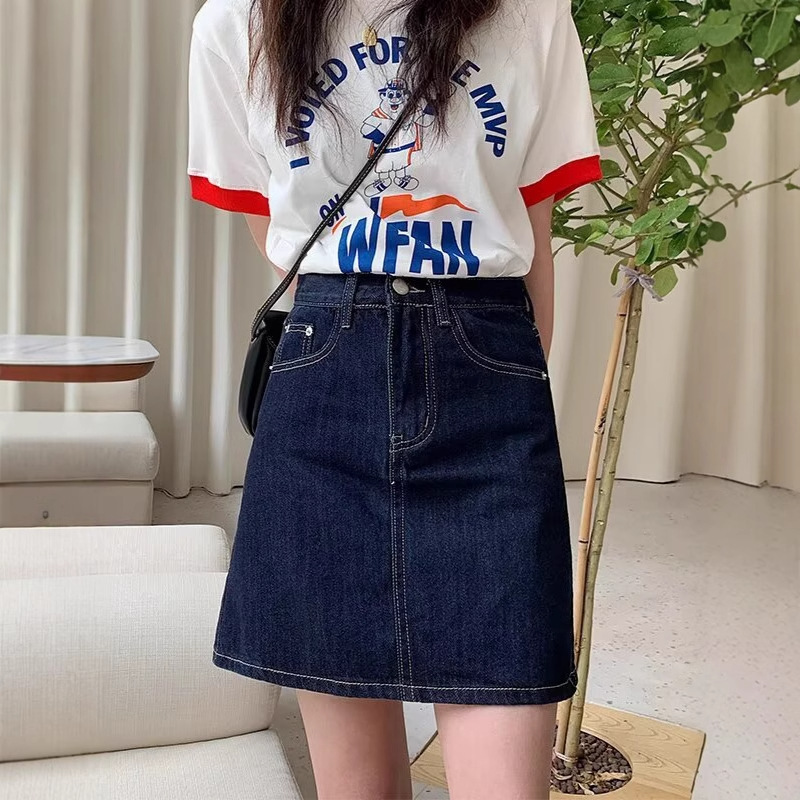 Rok Pendek Denim Pinggang Tinggi Rok Setengah Badan Menutupi Pinggul Huruf A Orang Kecil Terlihat Kurus Menutupi Perut Wanita Ukuran Besar Ukuran Besar Ukuran Tipis Musim Panas Wanita