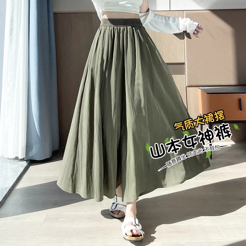 Rok Celana Wanita Rok Setengah Badan A-line Gaya Santai Longgar Model Baru 2025 Musim Panas Rok Celana Kulot Kaki Lebar Linama Yamamoto dengan Pinggang Tinggi