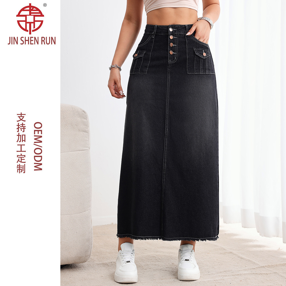 Rok Pendek Denim Hitam Wanita Musim Panas 2025 Model Baru Pinggang Tinggi Gaya Korea Ukuran Besar Rok Pinggul Dalam Celana Rok Setengah Badan A-Line