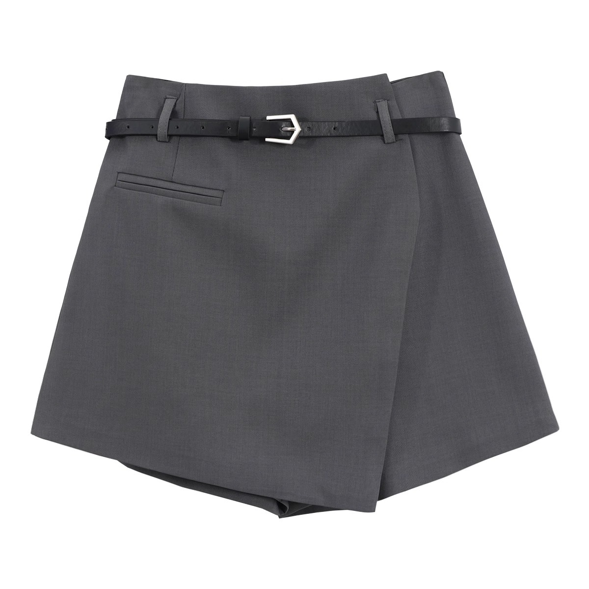 Rok Setengah Badan Setelan Abu-abu Rok Celana Pendek Kasual Kaki Lebar A-Line Terlihat Ramping Pinggang Tinggi Musim Semi dan Musim Gugur Model Baru 2025 Wanita