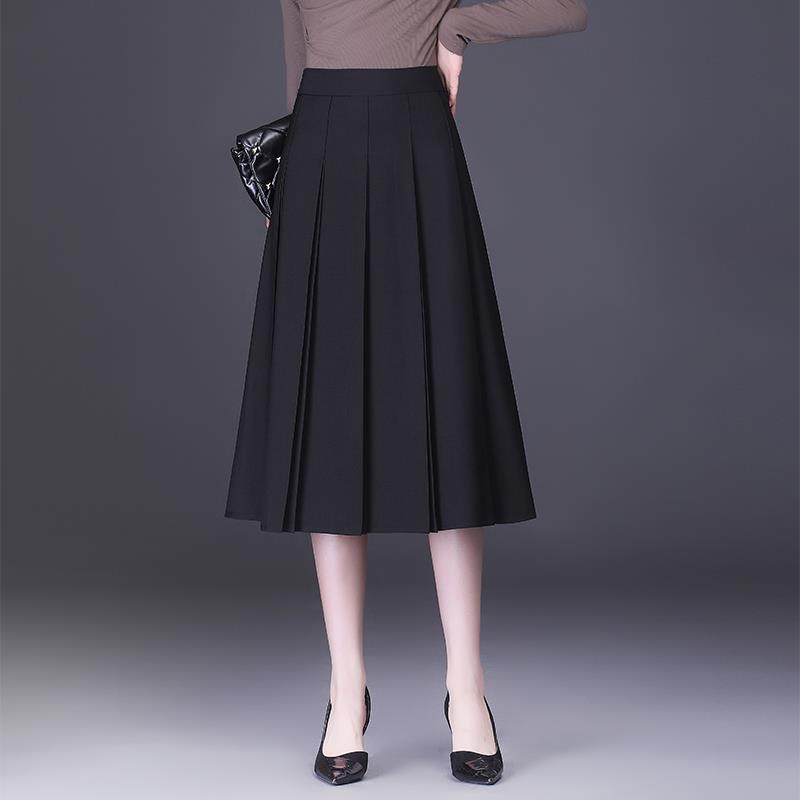 Rok Setengah Badan Wanita Ukuran Besar Pinggang Tinggi Terlihat Ramping Pinggang Tinggi Musim Gugur Rok Lipit Model Panjang Sedang A-line