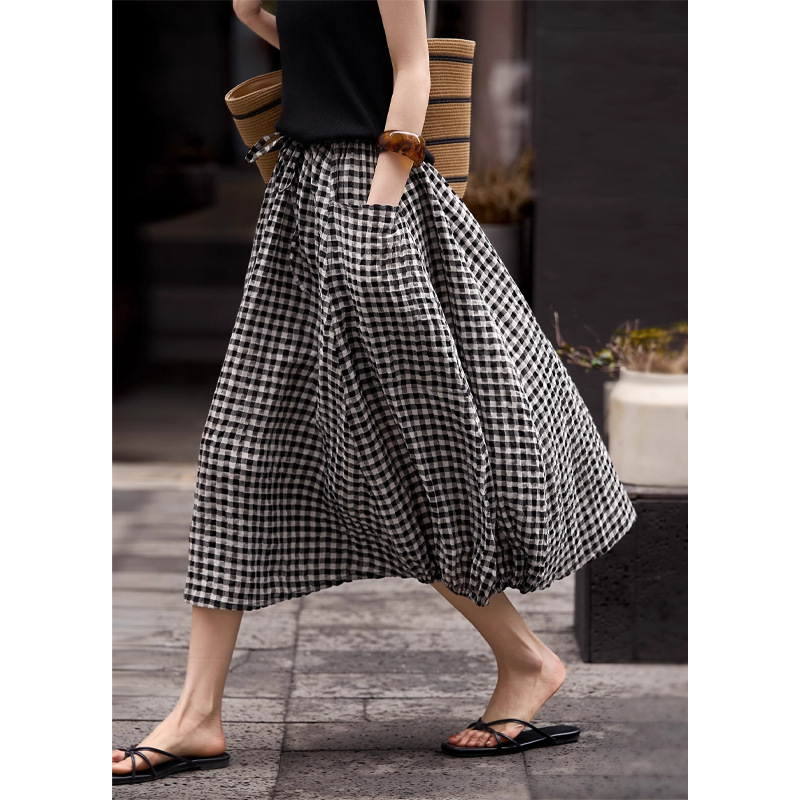 "Lambat Paris Gelembung Knex Rok Longgar Katun Linen Rok Setengah Pinggang Elastis Rok Bunga Musim Semi Baru 25 Tahun