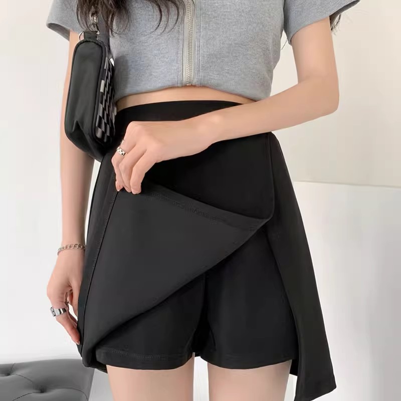 Rok pendek wanita, ukuran besar desain tidak teratur kulot musim panas chubby girl fashion serbaguna pelangsing a-line rok pendek