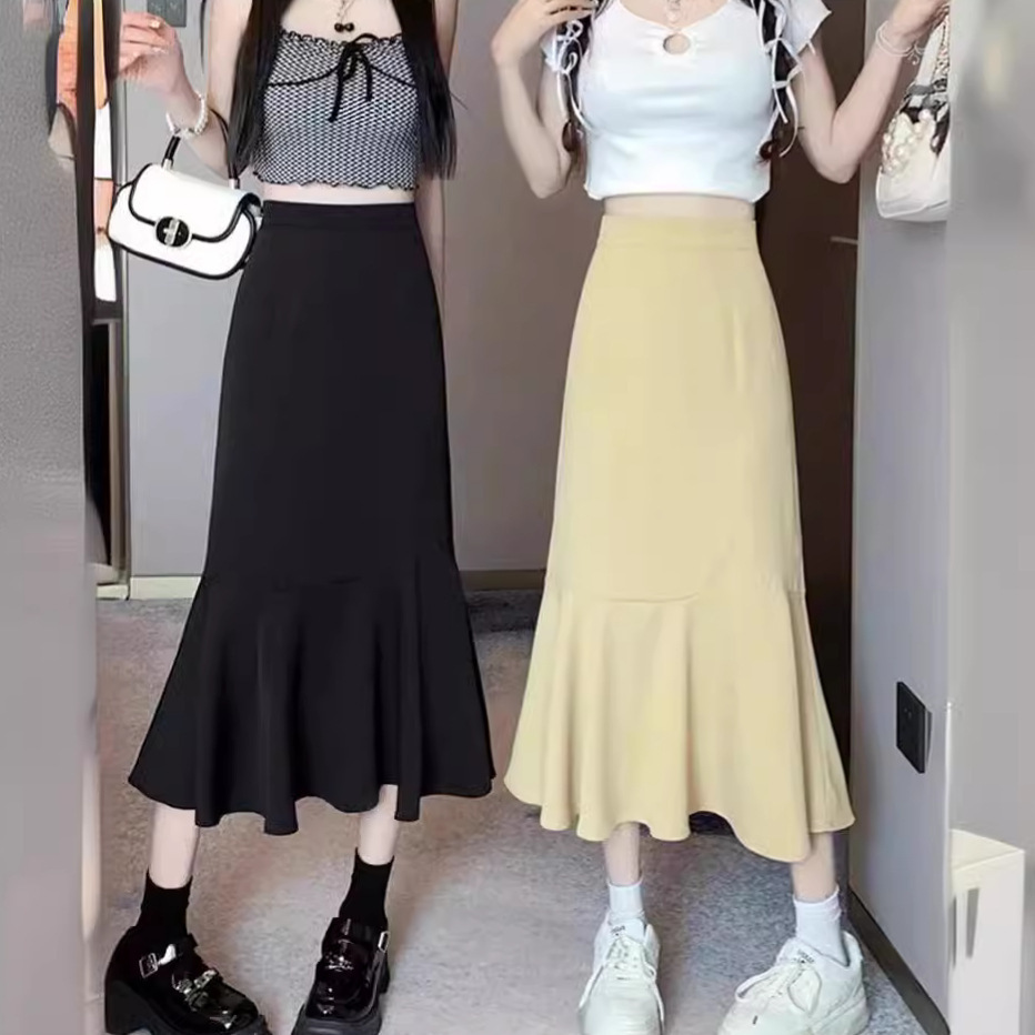 Rok pelangsing wanita gemuk penutup musim gugur dan musim dingin, rok ekor ikan kecil pinggang tinggi setelan tak beraturan ukuran plus musim gugur dan musim dingin