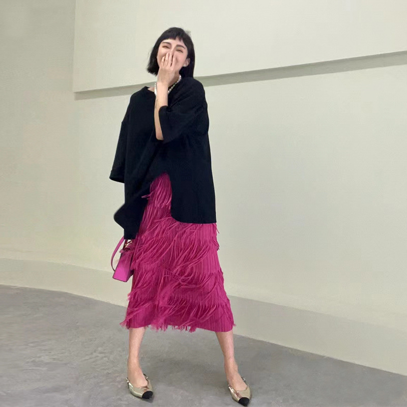 Rok Setengah Badan Kasa Desain Berayun Besar Lintas Batas Model Baru 2025 Rok Tuffin Terlihat Langsing Pinggang Tinggi Temperamen Jatuh