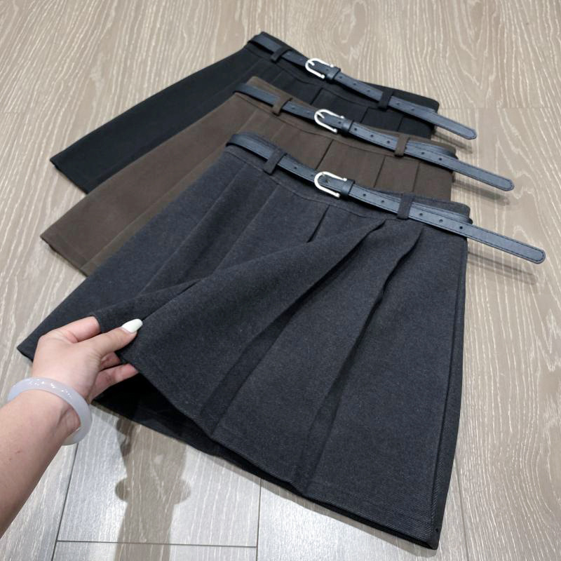 Bidheng rok berlipat wanita, setelan sabuk gaya Korea, rok a-line dekoratif musim gugur 2022