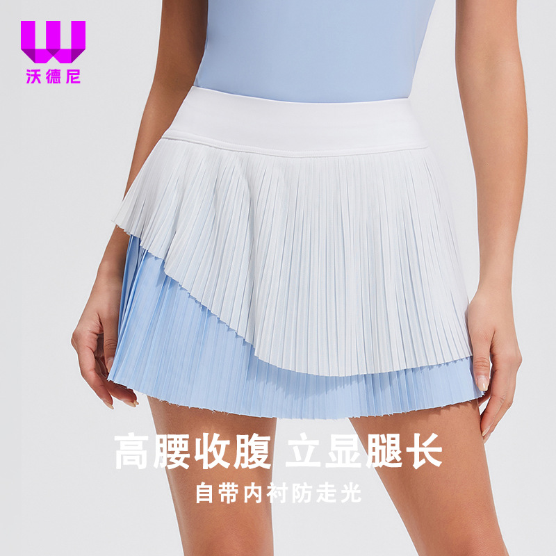 网球裙女网纱速干透气防走光假两件马拉松跑步运动百褶半身裙