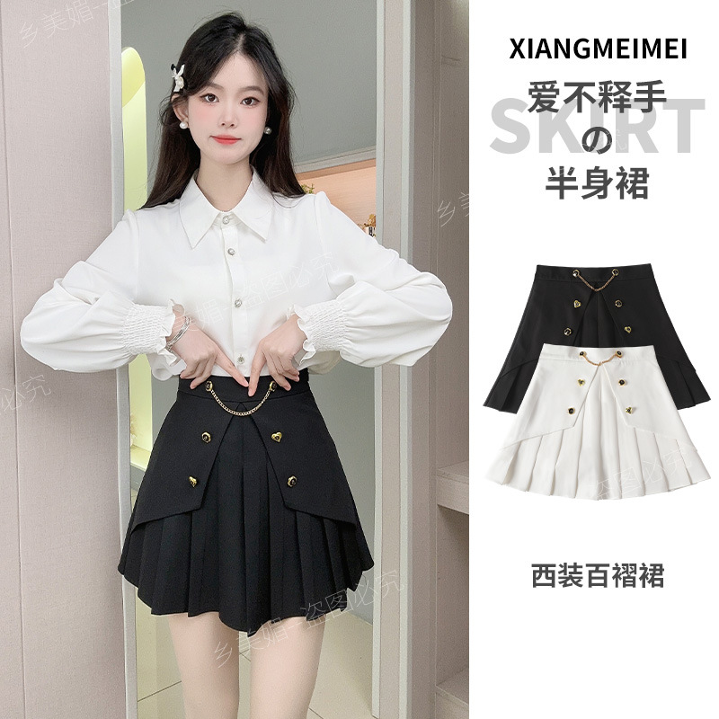 Xiangmeimei Rok Setengah Badan Model Baru 2024 Rok Lipit Pinggang Tinggi Wanita Rok Pendek Gadis Pedas Gaya Amerika