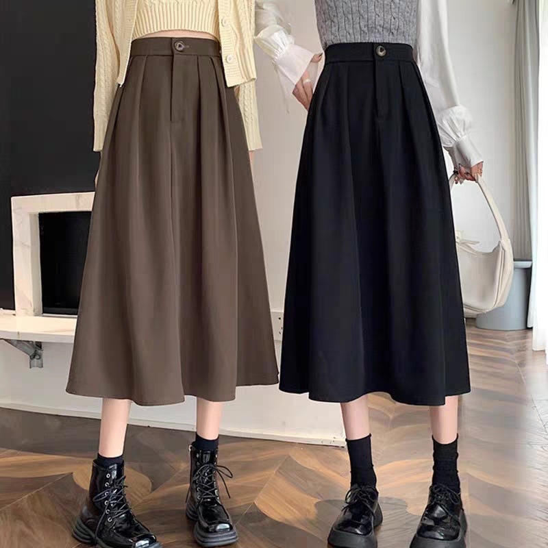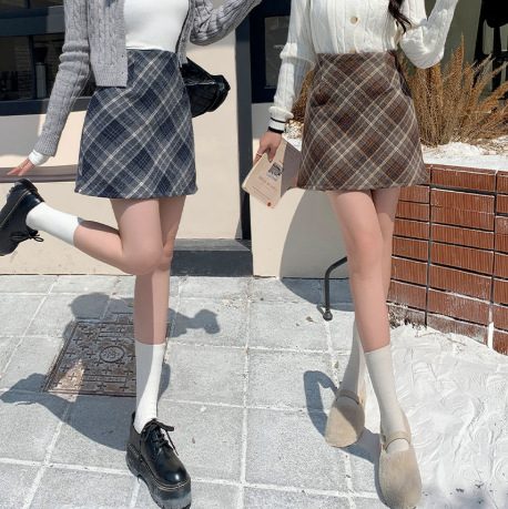 Rok wanita ukuran besar, Rok Wanita gemuk, rok kotak-kotak, rok a-line, rok pendek musim gugur, rok pinggul wanita ukuran besar
