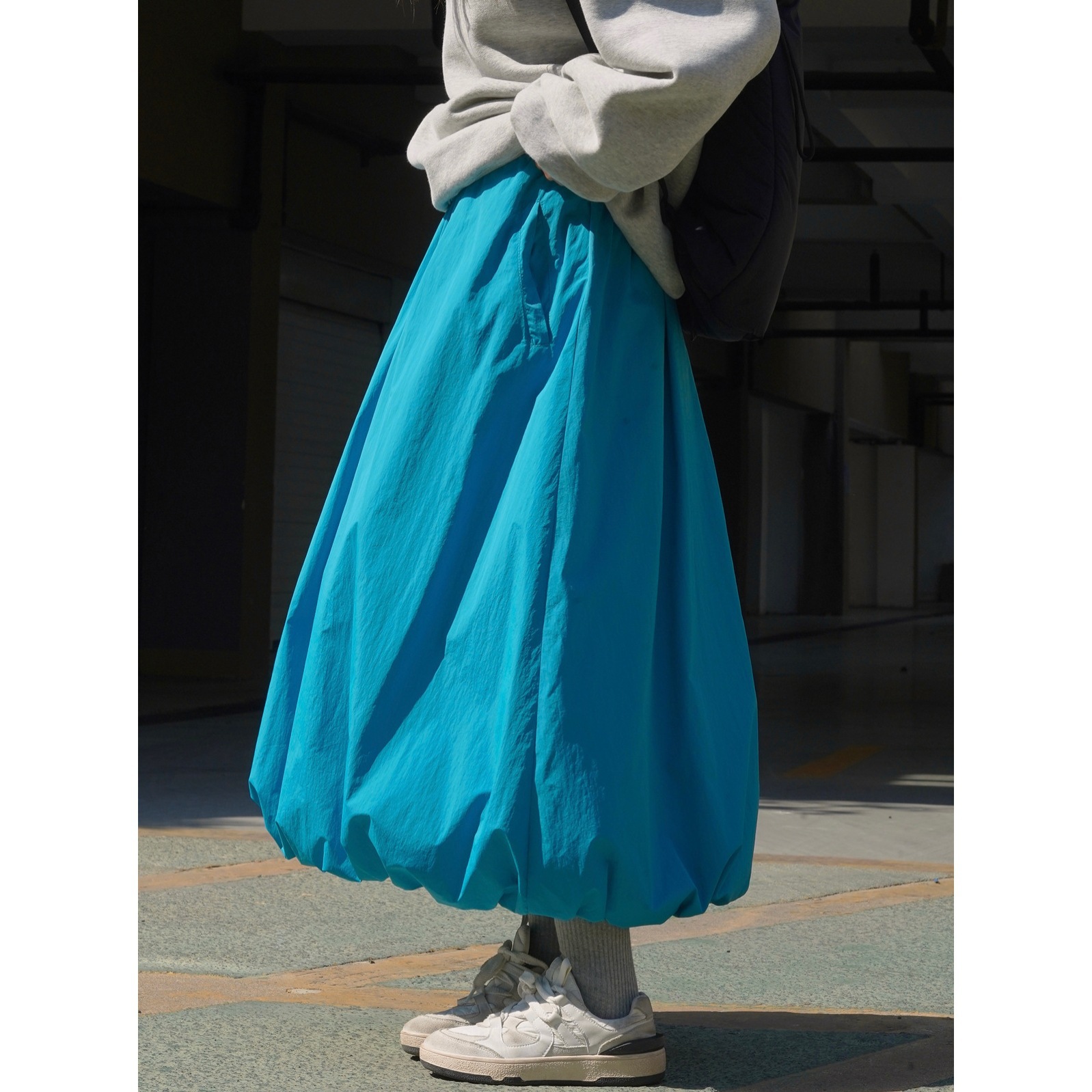 Rok Setengah Badan Katun Tebal Kasual Luar Ruangan Gaya Jepang Model Baru Musim Dingin Rok Payung Longgar Tetap Hangat Ringan Rok Panjang Wanita