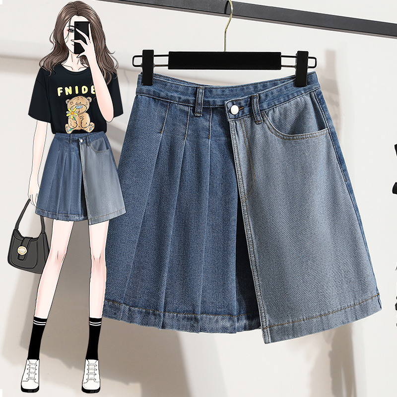 Rok Setengah Badan Denim Anti Terungkap Gadis Pedas Gaya Amerika Model Baru 2025 Rok Pendek Menutupi Pinggul Terlihat Langsing Adik Perempuan Gemuk Musim Semi Musim Panas Wanita Model Pendek
