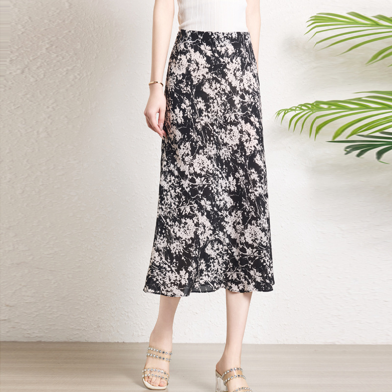 Rok Setengah Badan Sutra Asli Rok Ekor Ikan Ukuran Besar Longgar Wanita Rok Sutra Murbei 100% High-end Orang Kecil Musim Panas Model Baru 2025