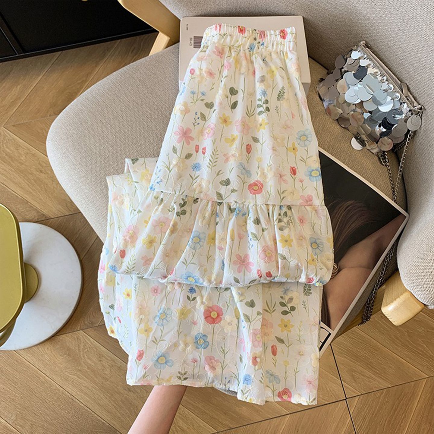 2025 Rok Setengah Badan Bunga Romantis Lembut Gaya Korea Rok Panjang Sedang Mudah Dipadu Padan Musim Semi Musim Panas Terlihat Langsing Model Baru Longgar Musim Panas