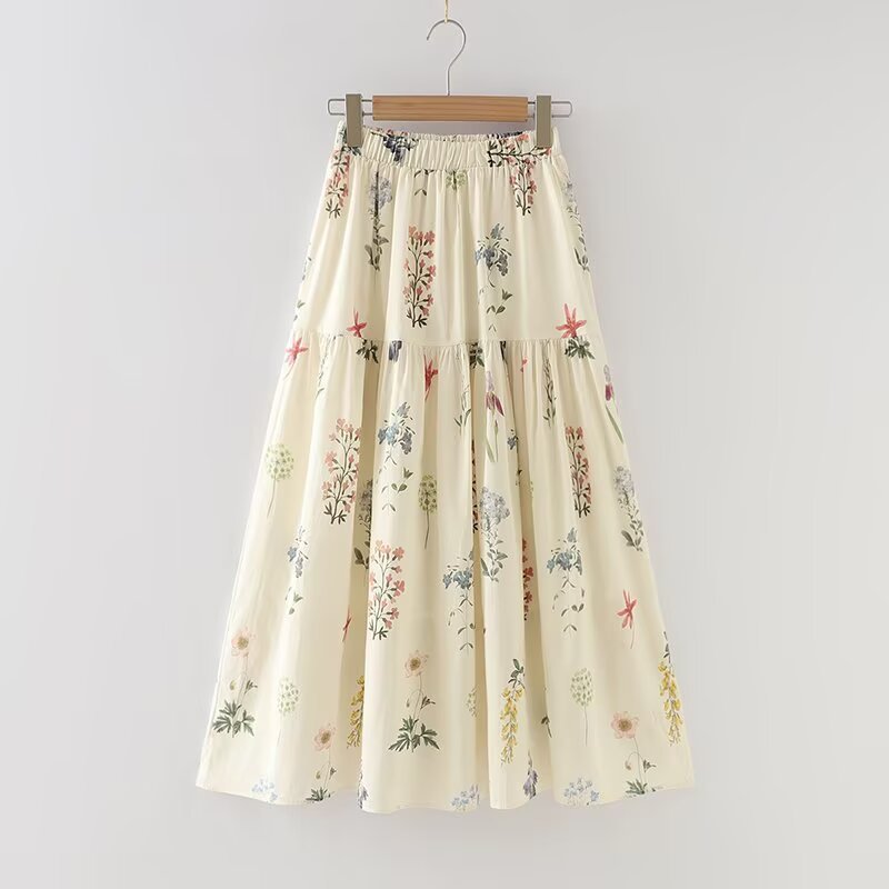 Rok Setengah Badan A Warna Bunga Rok Payung Wanita Tipe Panjang Sedang Terkurung Longgar Terlihat Langsing Pinggang Tinggi Model Tipis Model Baru Musim Panas 2025