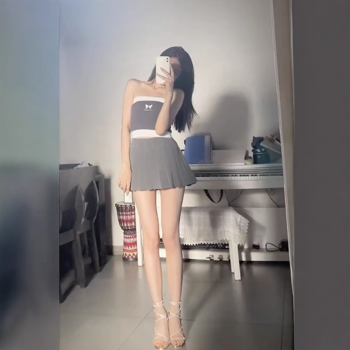 Rok Lipit Seksi Ukuran Besar Ukuran Besar Rok Super Pendek Gadis Pedas Warna Abu-abu Rok Setengah Badan Huruf A Gaya Murni Rok Payung Terlihat Langsing Pinggang Tinggi