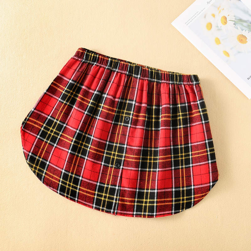 Rok dasar dalam tirai buangan sweater tumpuk baru katun poliester kotak-kotak pinggiran terbuka rok hem palsu sweter cocok