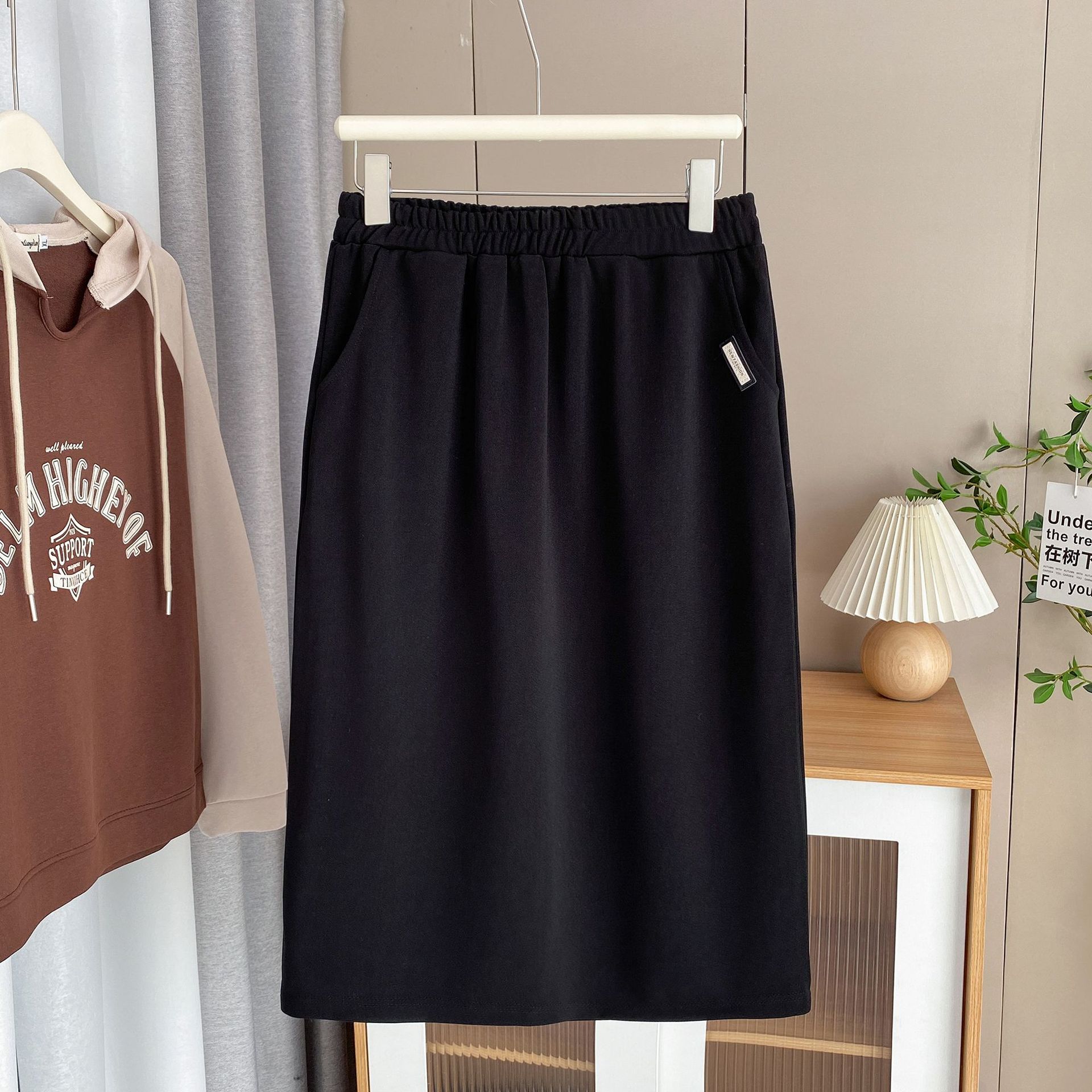 Rok wanita ukuran besar, musim semi dan musim gugur rok wanita ukuran plus, rok pemisah panjang menengah pinggang elastis kasual serbaguna 2346