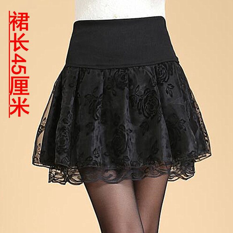 Rok Pinggang Tinggi Ukuran Besar Gaya Korea Mudah Dipadu Padan Anti-Walking Rok Pendek Renda Empat Musim Rok Setengah Badan